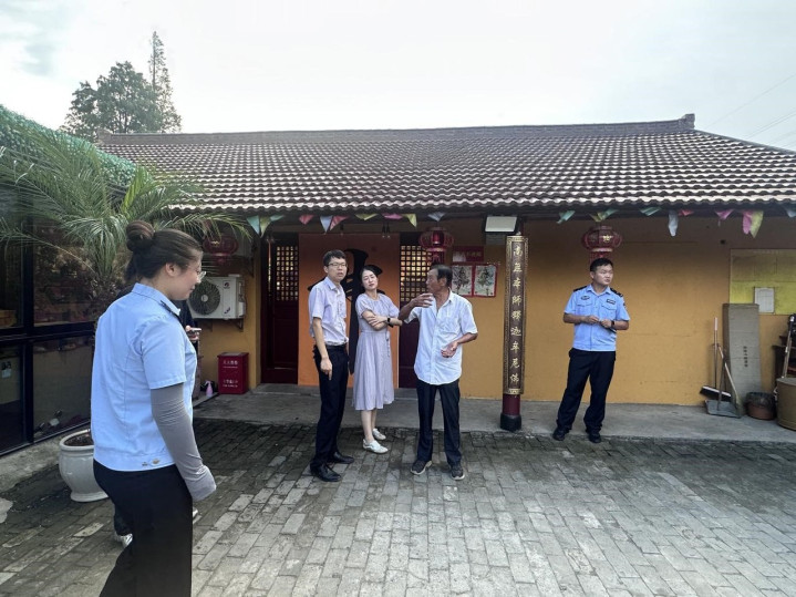 西塘桥街道工作人员在民间信仰场所检查。受访者供图