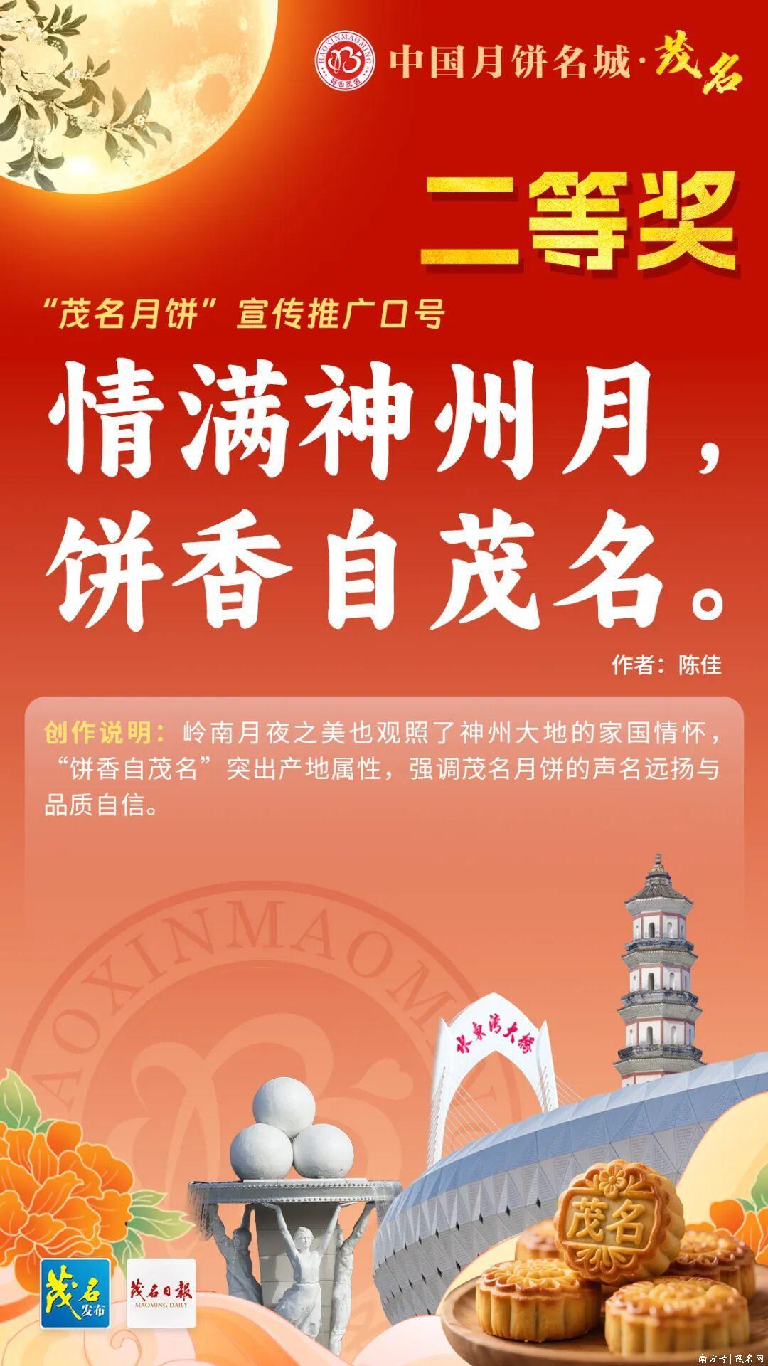 中国月饼看广东,广东月饼看茂名。为讲好茂名月饼故事,向全国各地推广“中国月饼名城”的美誉,8月19日,我市面向社会征集“茂名月饼”宣传推广口号。近日,按照活动评选流程,经过网络投稿、初评、专家终审、网络投票等环节,最终评选出一等奖1名、二等奖2名、三等奖10名,现名单公布如下。