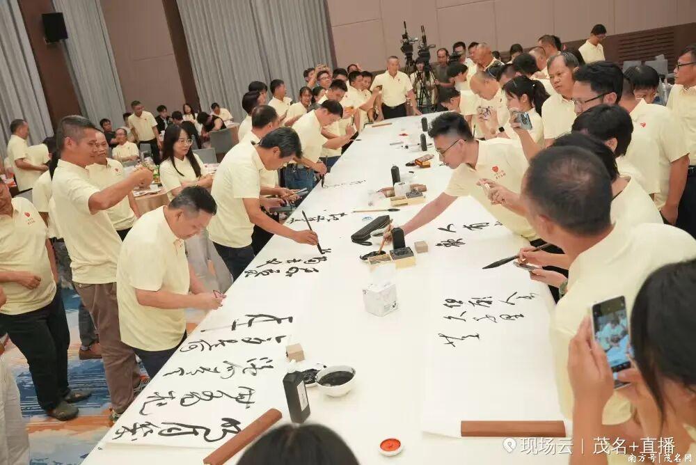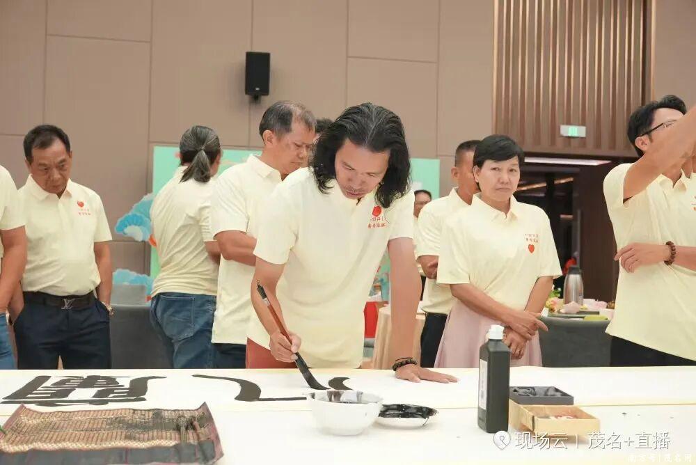 作为活动的重头戏,书法互动环节尤为引人注目。在“趣味对抗”比赛中,茂名市电白区书法家协会,茂名市女子书法家协会,茂南区书法家协会与茂名市青年书法家协会的书法家们挥毫泼墨,笔走龙蛇,充分展现了茂名书法艺术的深厚底蕴和蓬勃生机。